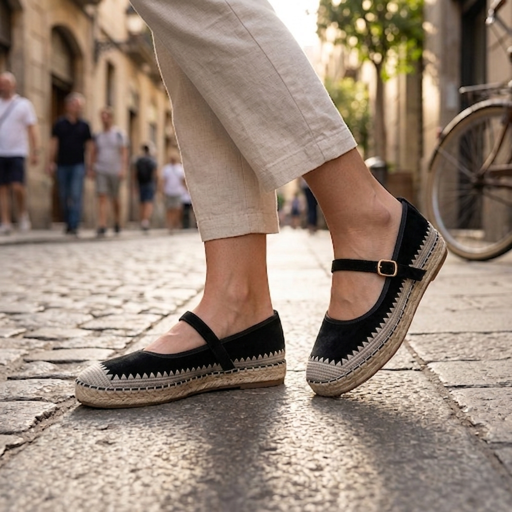 Craquez pour ces espadrilles au style Mary Jane revisité, alliant charme classique et confort moderne. Avec leur finition en toile texturée et leurs détails tressés sur la semelle, elles apportent une touche artisanale très tendance.