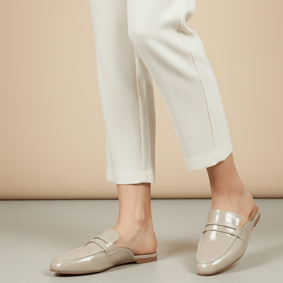 Apportez une touche d’élégance intemporelle à vos tenues avec ces mules plates effet cuir brillant au design épuré et raffiné. Leur finition lisse et brillante offre un rendu sophistiqué, idéal pour un look chic au quotidien.